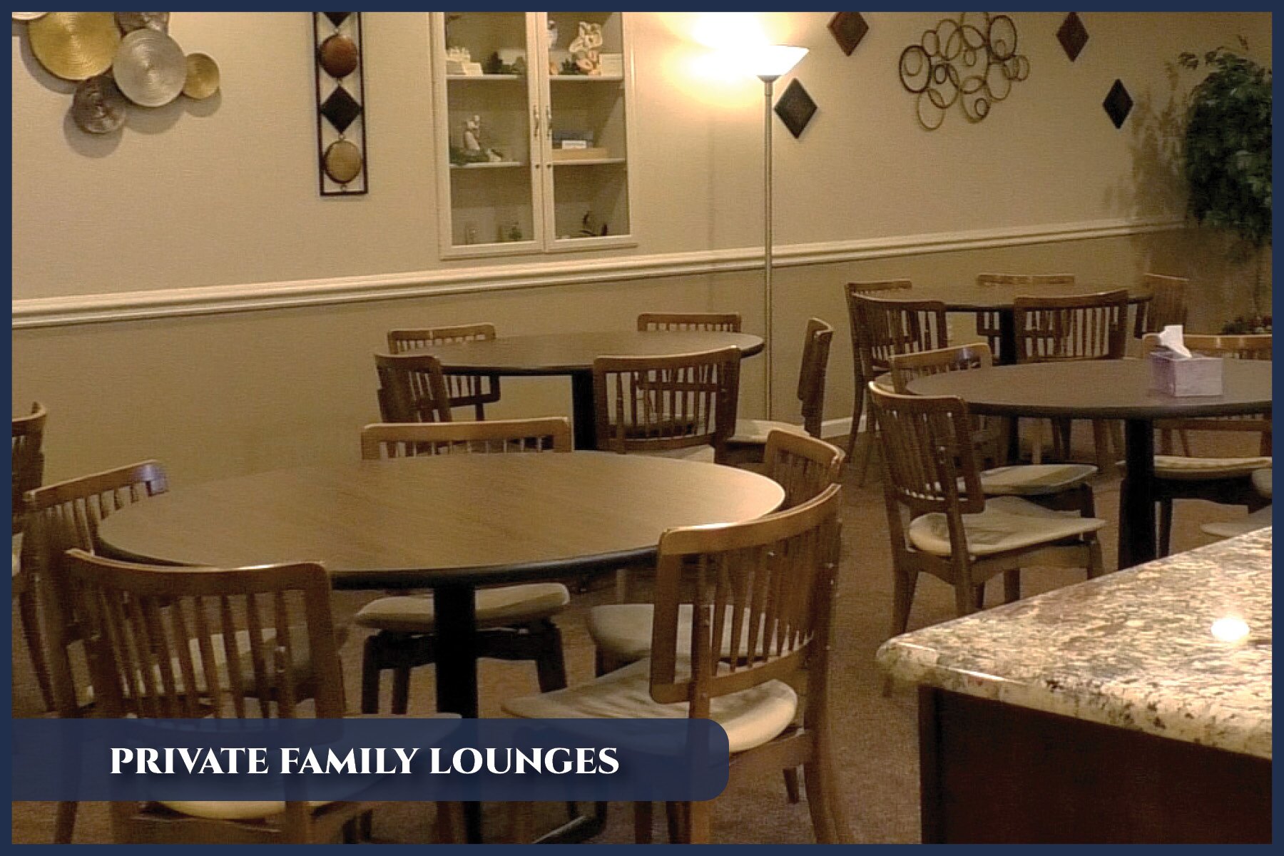 We want you to feel as though our facilities are an extension of your own home. You will find updated decor and beautiful furnishings for any size gathering.