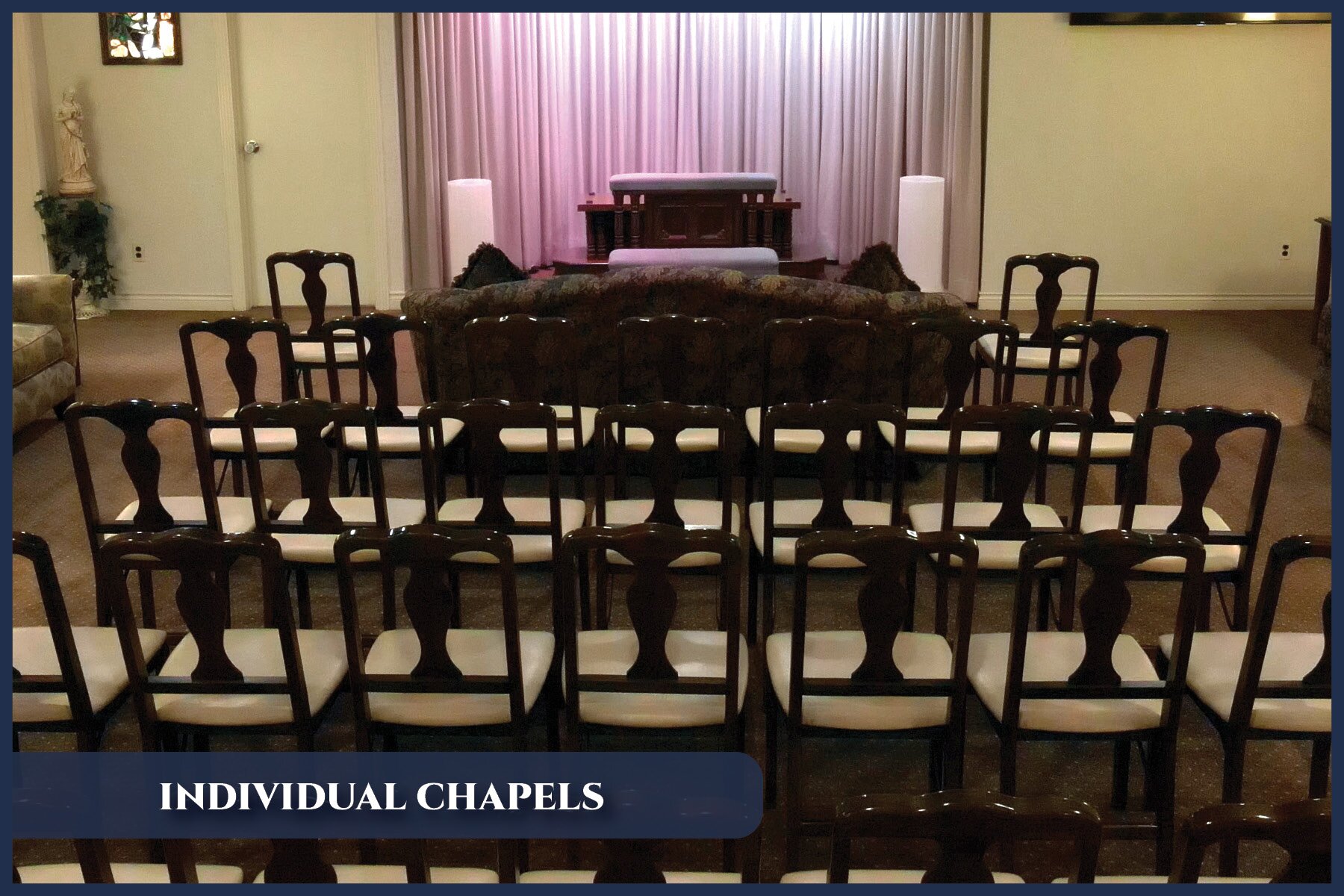Our chapels are all located on the first-floor and designed to accommodate hundreds comfortably in an elegant setting.