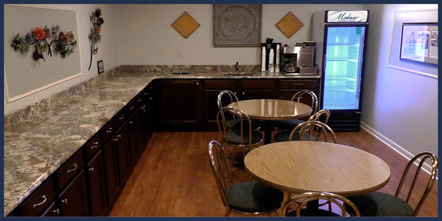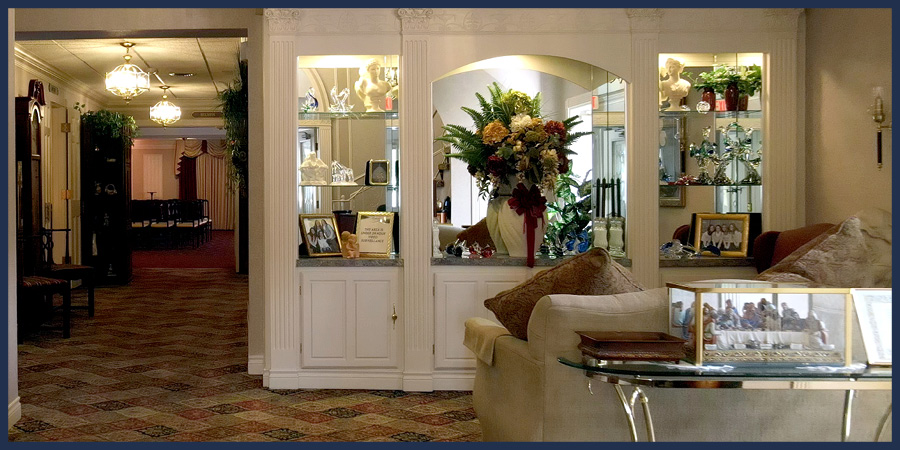 We offer complimentary WiFi throughout the funeral homes. Each chapel is equipped with large flat screen televisions and state-of-the-art DVD and music systems to help families honor their loved one through video tributes and/or special musical selections. Our buildings are handicap accessible with all of our chapels and lounges located on the first floor. The parking lot is well lit and offers ample spaces for all of your guests. Additionally, if you choose to have a reception on-site, we will assist with catering options, whether it be our caterer or one of your choice. Our catering choices include a variety of options including anything from simple hor d'ourves to a complete meal selection.